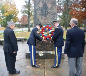 WHAT: Memorial wreath presentation at the memorial site in honor of Veterans Day. WHO: New York Army National Guard Staff Sgt. Colin Stewart from Garden City, a member of the 1st Battalion, 69th Infantry that served in WWI with the Rainbow Division, presents the memorial wreath on behalf of the New York Army National Guard's 42nd Infantry Division. Stewart will be joined by Cyril Smith, a Vietnam veteran and Garden City resident, who was instrumental in gaining village financial support for the monument's recent restoration.